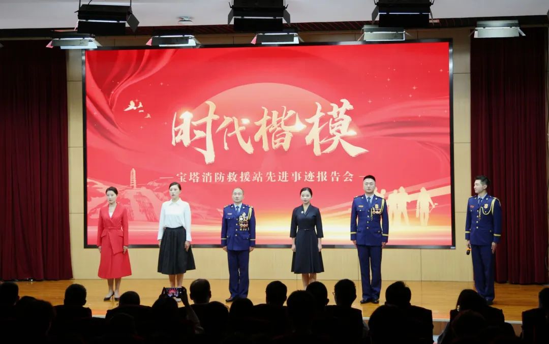 陕西省延安市宝塔区宝塔消防救援站建队51年来,弘扬延安精神,传承红色基因,淬炼过硬本领,全心全意为人民服务,先后获得各类荣誉230余项,荣立集体一等功2次、二等功2次,2021年被中共中央授予“全国先进基层党组织”称号。2023年11月,中共中央宣传部授予宝塔消防救援站“时代楷模”称号,褒扬他们为“宝塔山下的忠诚卫士”。