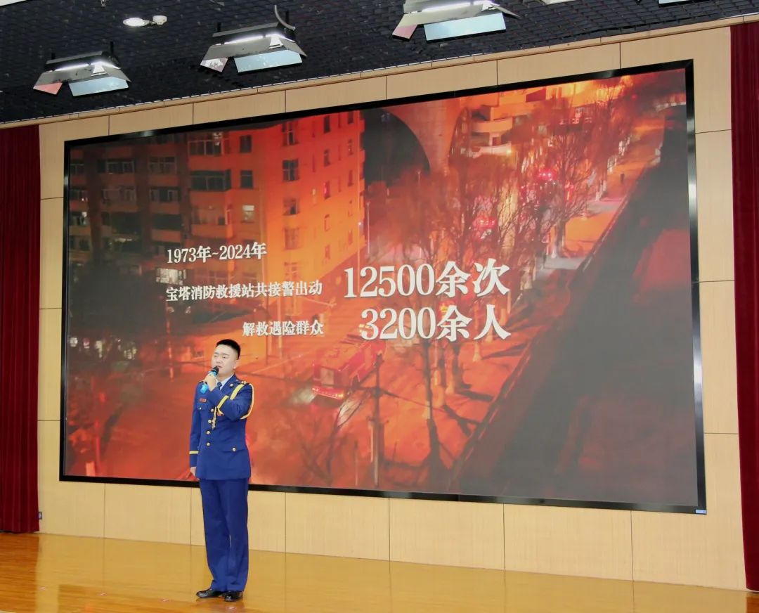 报告会上,延安市宝塔消防救援站政治指导员裴文博、枣园革命旧址管理处讲解员刘琴、宝塔消防救援站站长助理张保愿、宝塔区阳光社区居民李小田、延安市融媒体中心记者徐晓蒙等五位报告团成员分别以《永远的忠诚》《守护红色根脉 传承红色基因》《甘当鲁班石 铺就奋进路》《迟到七年的锦旗》《山丹丹花永绽放》为题,从不同角度深情讲述了宝塔消防救援站51年来的奋斗历程,生动展现了消防救援队伍的时代风采和优良作风。他们的讲述语言质朴、感情真挚、事迹感人,深深地打动了在场的每一位听众。现场气氛热烈,掌声不断。