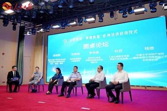 “5、4、3、2、1……”随着活动现场主持人倒计时,陕西省委网信办副主任马卫东,陕西省委金融办二级巡视员张春明,中国人民银行陕西省分行党委委员、副行长李彤,人民日报数字传播董事长、总经理吴绮敏,人民日报社陕西分社社长张铁,陕西省农村信用社联合社党委副书记、副理事长、主任田亚欧,陕西省民政厅党组成员、副厅长戈养年,西安市公安局党委委员、政治部主任贾鹏图共同启动了“金融强国·陕耀新篇”系列活动。
