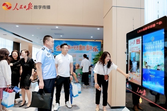 现场,开设拍照打卡功能的43英寸双屏《人民日报》电子阅报栏吸引了不少嘉宾前来体验互动。“来,看这里!三、二、一!”在工作人员的指引下,西安市公安局刑事侦查局反诈处副处长罗刊民点击屏幕“主题换肤”按钮,选择了“书写金融强国陕西篇章、开创金融事业发展新局”的主题背景进行拍照。“体验感很棒!一方屏,把嘉宾和活动‘链接’了起来!”