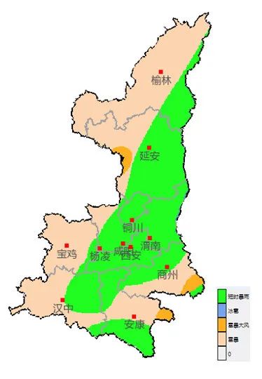 1、关注暴雨天气的影响。陕北东部及南部(榆林东部、延安)、关中中东部(铜川、咸阳、西安、渭南)、陕南部分地方(汉中东部、安康、商洛)有暴雨,局地(延安南部、铜川、咸阳南部、西安北部、汉中北部、商洛北部)大暴雨,引发城市内涝、山洪、中小河流洪水及地质灾害等次生灾害风险高。政府及相关部门按照职责做好相关防御工作。公众需密切关注预警,注意天气变化,雨天出行注意安全。根据当地政府安排果断及时撤离,远离临水临崖等灾害易发地带。