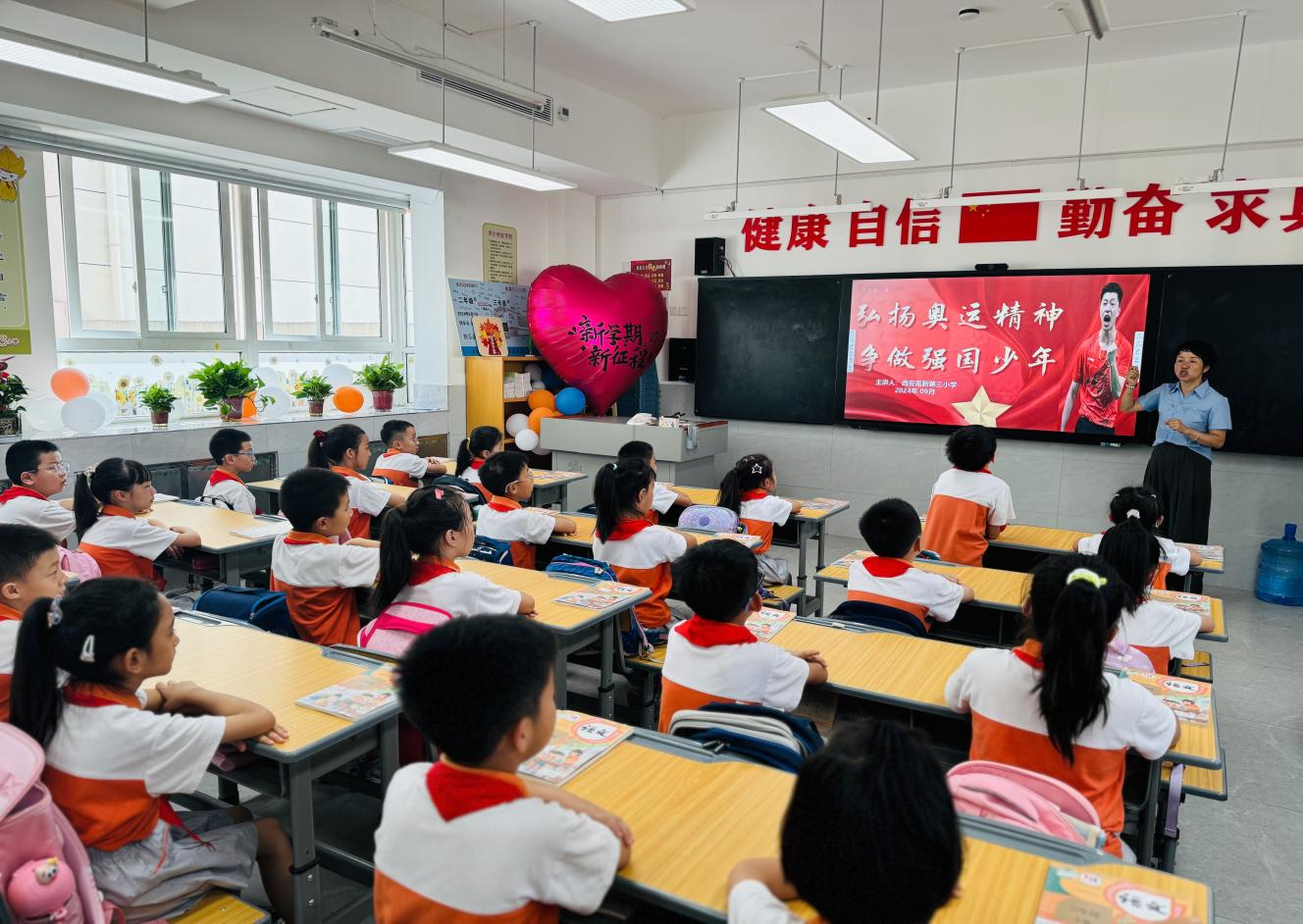 随后,各班教室里都充斥着奥运健儿的影子,老师们从奥运知识我来猜、奥运故事我来讲、奥运精神我来传三个方面给孩子们讲述了奥运健儿的故事。樊振东的“大心脏”、全红婵的脚踏实地、石智勇的参与比取胜更重要,陈梦和孙颖莎的友谊第一等等,让孩子们树立健康积极的三观,学习他们身上奋勇拼搏、坚持不懈的精神,也感受他们的自信乐观和心胸豁达。