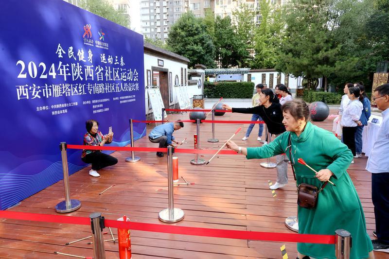 据介绍,陕西省社区运动会办赛突出百姓化、大众化、广泛性和趣味性。省级比赛设置了球类、素质类、棋类、操舞类、趣味类五大类17个项目。其中,球类项目包括篮球、足球、乒乓球、羽毛球;素质类项目包括跳绳、拔河、50米往返跑;棋类项目包括象棋、围棋、国际象棋;操舞类项目包括广场舞、太极拳(剑、扇)、健身气功;趣味类项目包括五人投壶、团体沙包、四人踢毽、两人三足。各市(区)依据省级比赛项目确定市(区)比赛项目,可结合实际增设1至2个特色项目。西安市以县(区)为单位设点办赛,其他市(区)定点办赛。宝鸡市、咸阳市、渭南市、榆林市、汉中市的点位设置不少于8个,延安市、安康市、商洛市、铜川市的点位设置不少于6个,杨凌示范区、韩城市的点位设置不少于2个。全省办赛点位将超过80个。