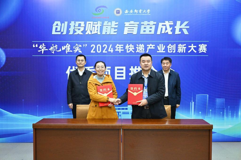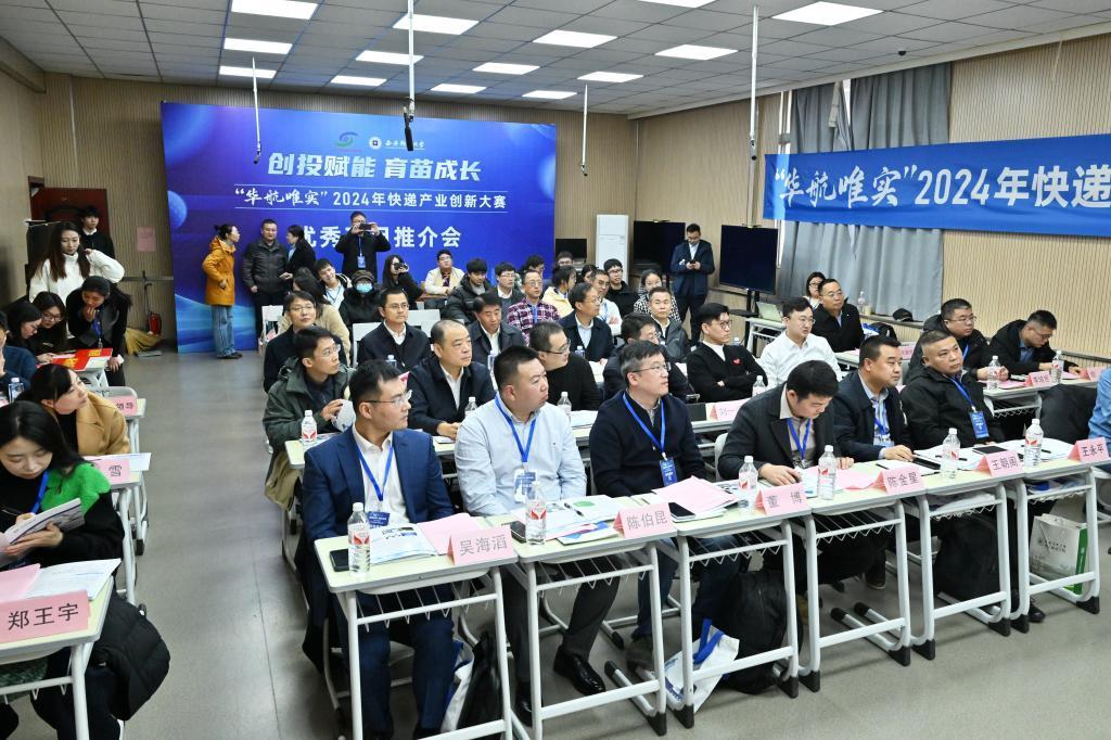 大赛组委会还开展了“创投赋能,育苗成长”——快递产业创新大赛优秀项目推介会,为优质项目与投资机构之间搭建高效对接平台,有效促进成果转化,进一步助力行业培育发展新质生产力。氪星创服、栖芸投资、东方飞马、中经博略等创服机构,以及邮政、顺丰、韵达、极兔等邮政快递企业的代表参加会议,《末端慧选先锋——模块化大件分拣系统》等项目达成投资意向并签约。