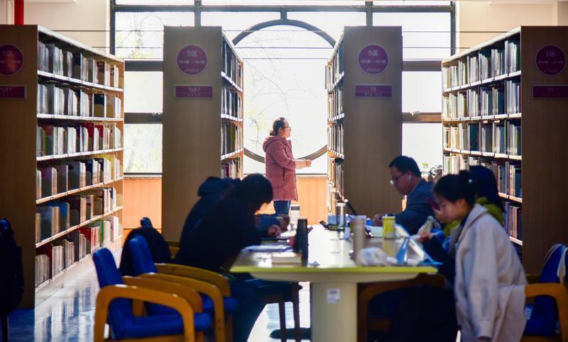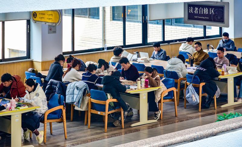 12月21日,读者在陕西省图书馆内阅读学习“充电”休闲。时值冬至,室外寒冷,温暖的陕西省图书馆迎来了读书热潮,不少市民在馆内阅读、自习,在书香气息中静享“悦读”时光。西安报业全媒体记者 王健 摄