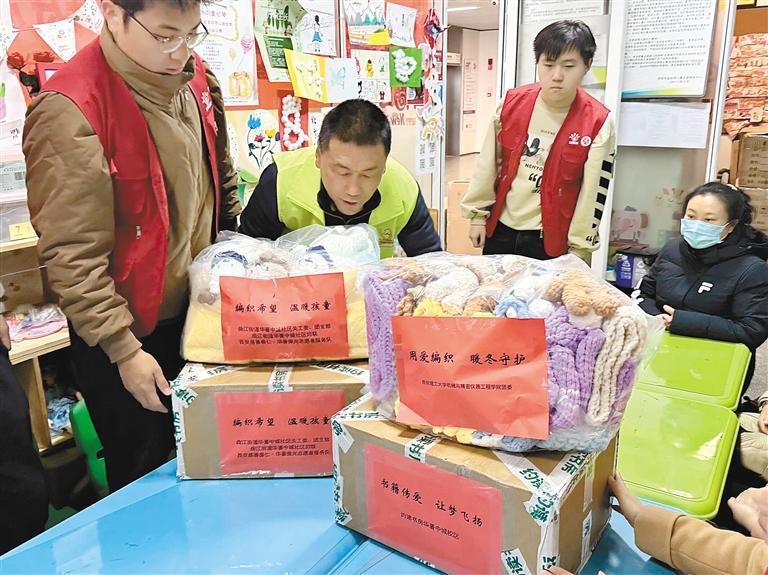 于是,10月14日,社区工作人员在社区志愿者群里发布了暖冬编织内容的公益活动信息,号召大家通过编织保暖用品和毛线玩具献爱心。在西安慈善秦仁·华著微光志愿者服务队助力下,众多居民志愿者也加入其中。还有不少西安理工大学的学生也参与到此次充满温情的活动中来。