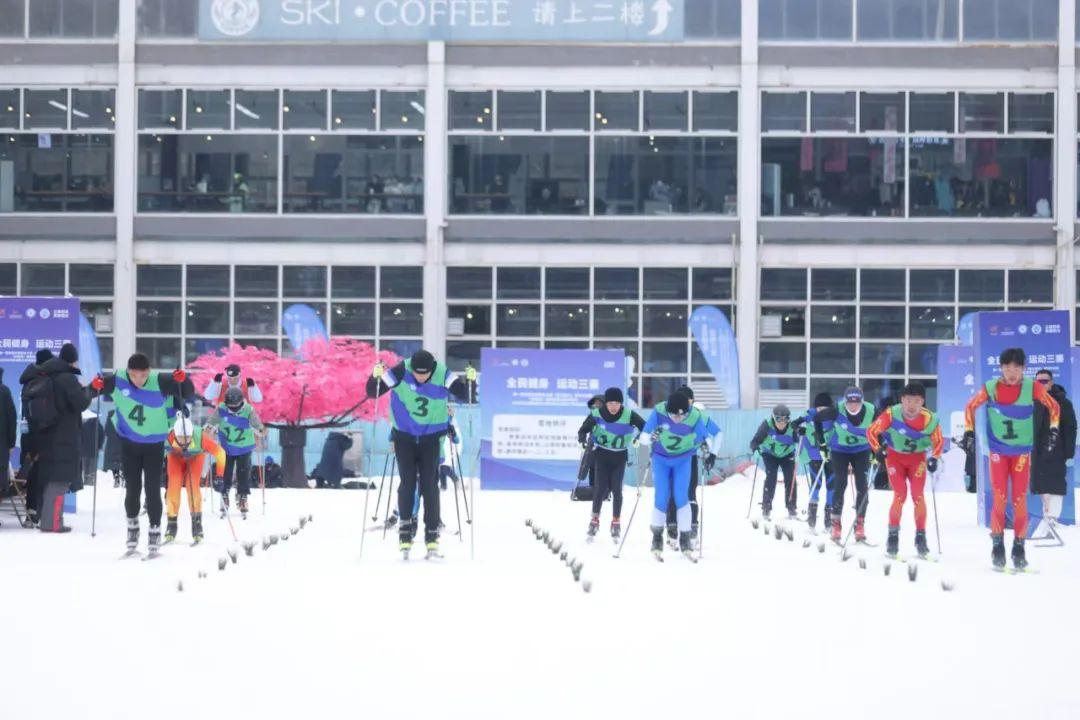男女团体4×500米接力比赛,就是男女4×5公里冬奥项目在全民健身比赛中的十分之一缩略版,距离虽然大幅压缩,但比赛强度和分压的激烈程度更强烈。在男子组比赛中,新疆代表队以8分33秒83的优异成绩率先过线,甘肃代表队紧随其后,以9分51秒89的成绩取得第二,陕西一队则以12分09秒33的成绩获得第三名。