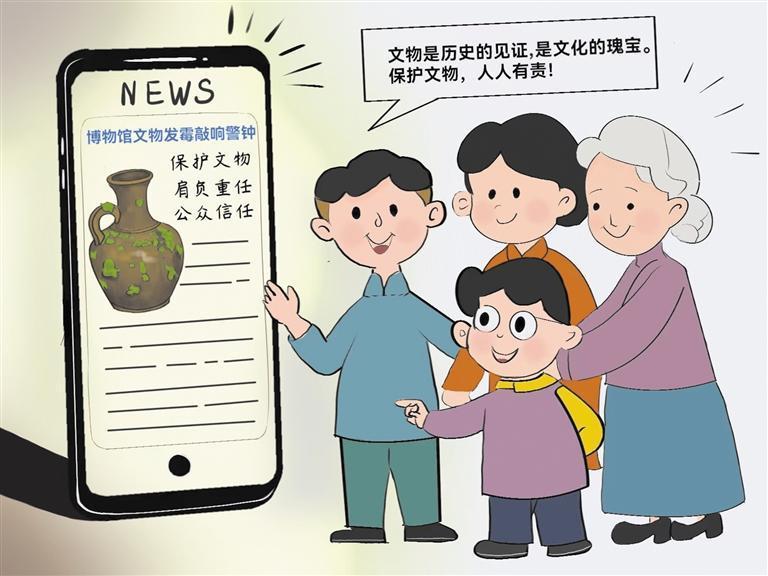 近日,有游客参观某博物馆时发现,展柜内的文物发霉了。此事件引发网友广泛关注。文物是历史的见证,是文化的瑰宝。保护好文物和文化遗产,就是保护好中华民族精神生生不息的根脉。文物保护需要全社会的共同努力,每一个人都是文物保护的参与者和受益者,我们应为文物保护贡献自己的一份力量。