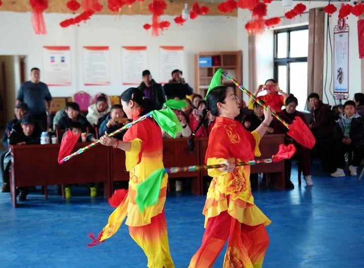 2025年1月1日,宁夏中卫市海原县三河镇红城村秉宏文化大院给村民送上“文化大餐”。新华社记者 邹欣媛 摄