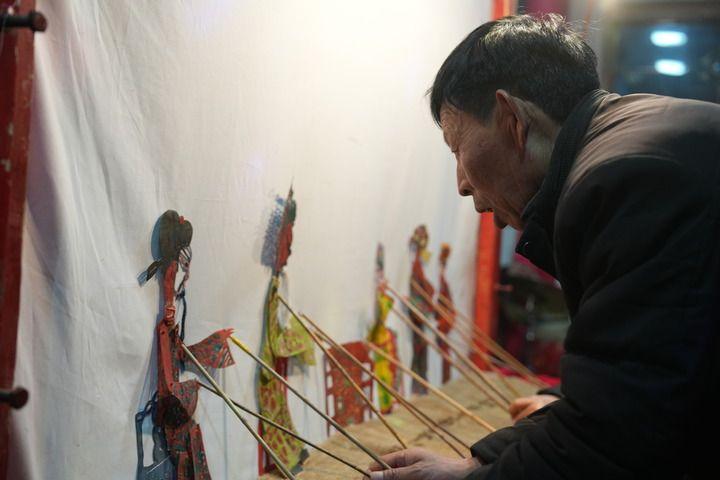 2025年1月1日,在宁夏中卫市海原县西安镇岳成文化大院,正在上演皮影戏。新华社记者 邹欣媛 摄。