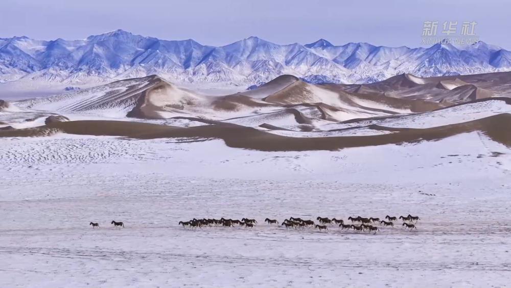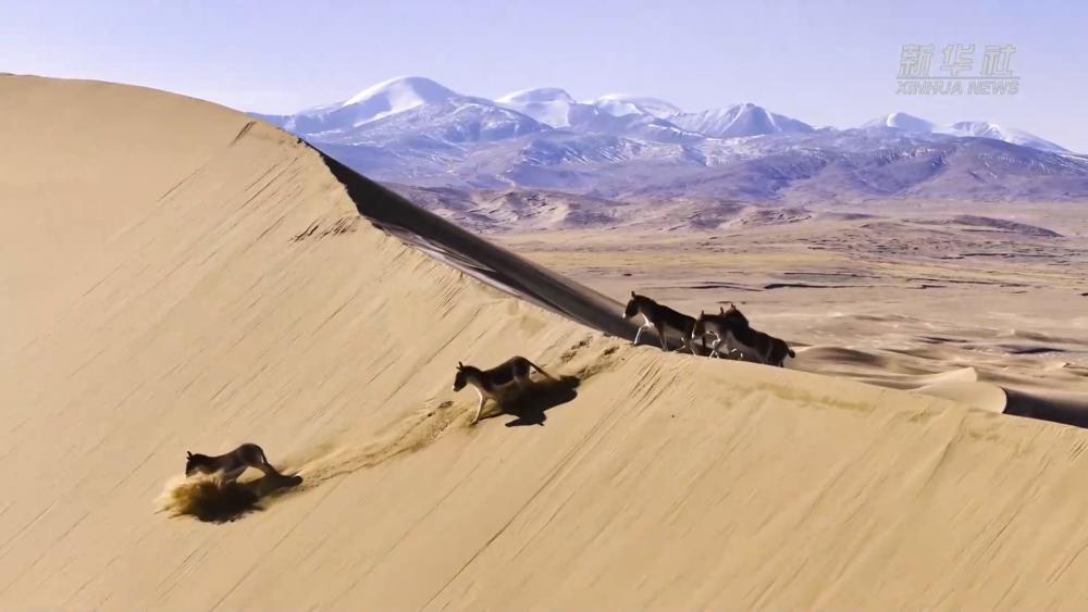 新年伊始,在新疆库木库里沙漠中,摄影爱好者拍摄到成群珍稀野生动物在沙漠中奔跑、迁徙。