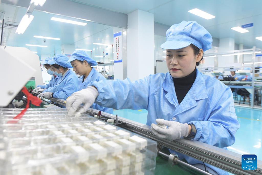 Employees work at a lighter parts factory in Huiting Town, Xiayi County, Shangqiu, central China's Henan Province, Jan. 3, 2025. Enterprises across China are operating at full capacity to meet production demands at the start of the new year. (Photo by Wang Gaochao/Xinhua)