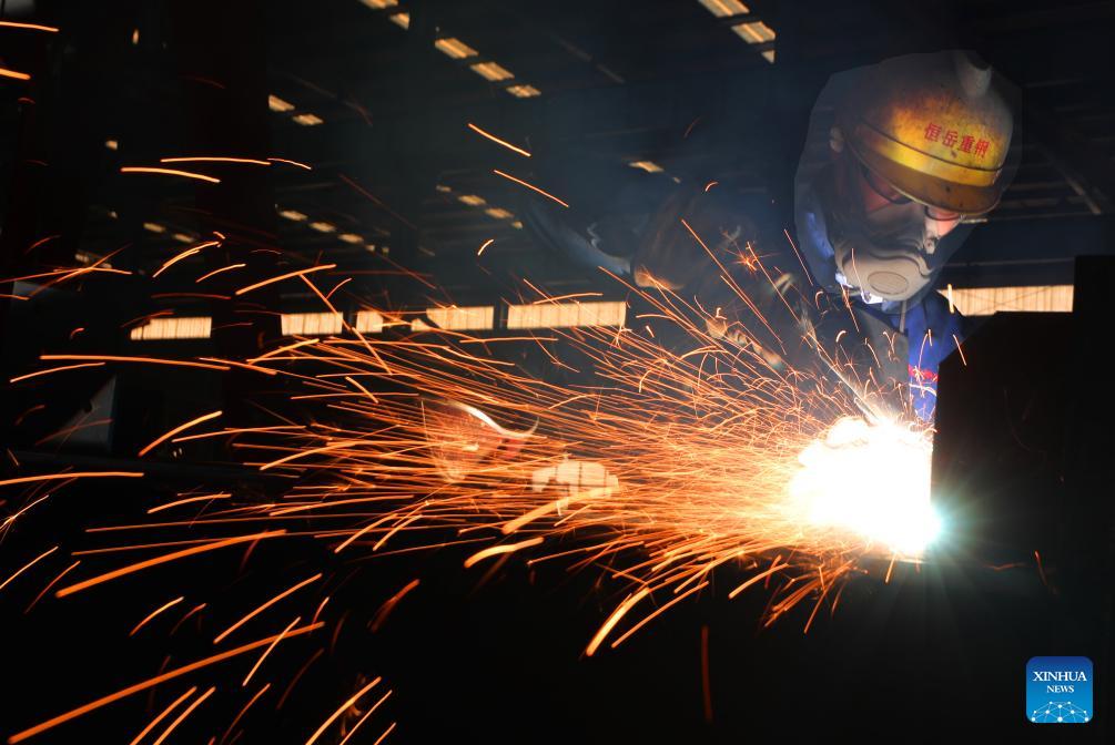 A staff member works at a heavy steel structure engineering company in Hengshan County, central China's Hunan Province, Jan. 3, 2025. Enterprises across China are operating at full capacity to meet production demands at the start of the new year. (Photo by Cao Zhengping/Xinhua)