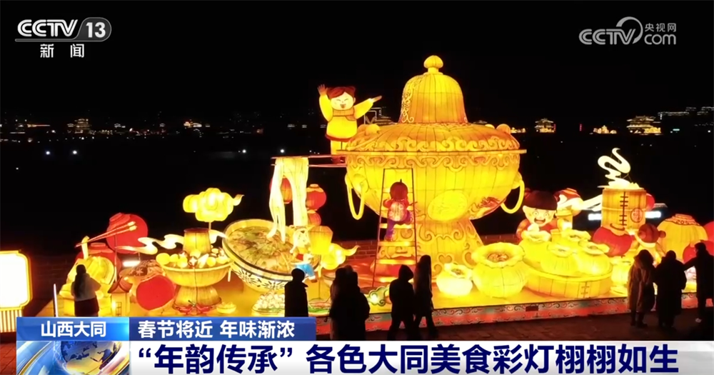 央视网消息:虽说眼下距离春节还有些时日,不过在不少地方年味已经开始浓起来。这几天,在山西大同,一场充满地域特色的灯会正在上演,大家不仅能看到今年大热的悟空、经典的山西古建,甚至还有山西美食题材的彩灯,非常有创意。一起去现场逛一逛。