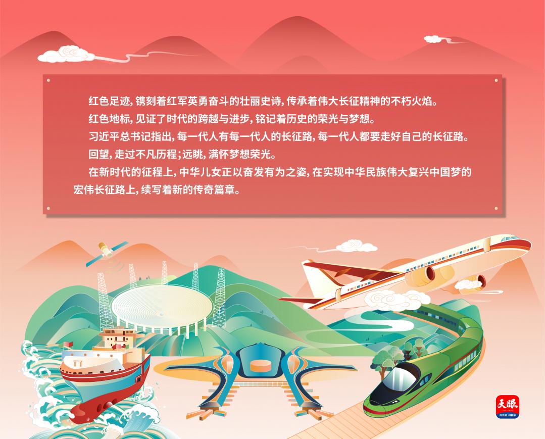 新时代新征程,中华儿女传承和弘扬伟大长征精神,以奋发有为之姿,在实现中华民族伟大复兴中国梦的宏伟长征路上,续写着新的传奇篇章。