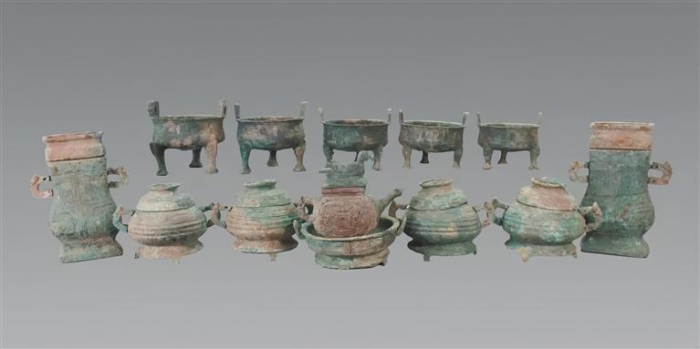 宝鸡魏家崖遗址春秋五鼎墓M4铜器组合。