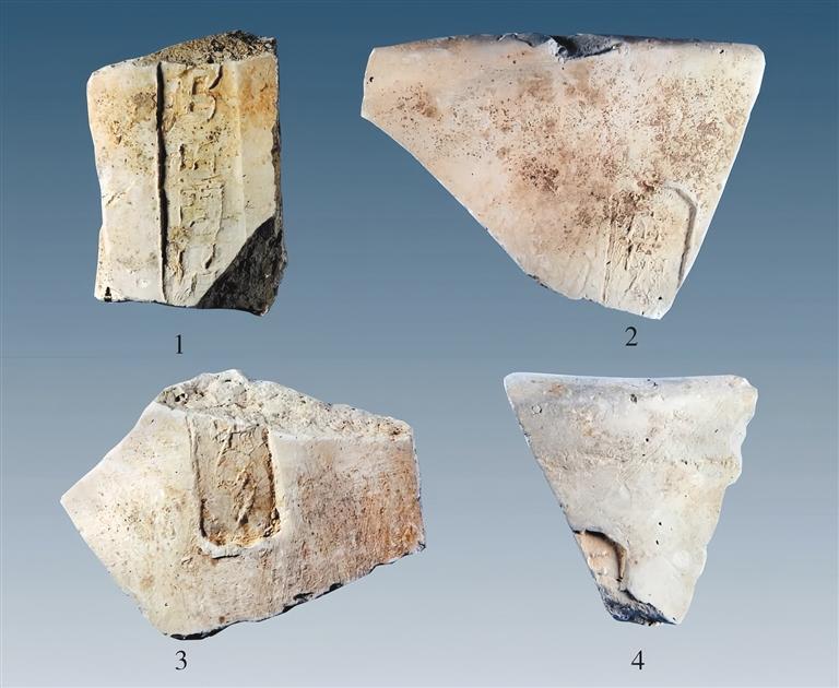 隋唐长安城安化门遗址墩台基槽底部夯土中发现的铭文瓦。
