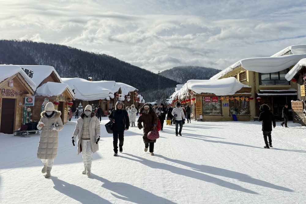 2024年12月29日,游客在位于黑龙江省海林市的“中国雪乡”景区内的雪韵大街游玩。新华社记者 杨思琪 摄