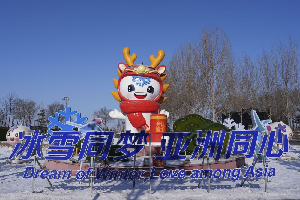 这是1月8日在哈尔滨群力新区友谊西路拍摄的亚冬会景观。新华社记者 王松 摄