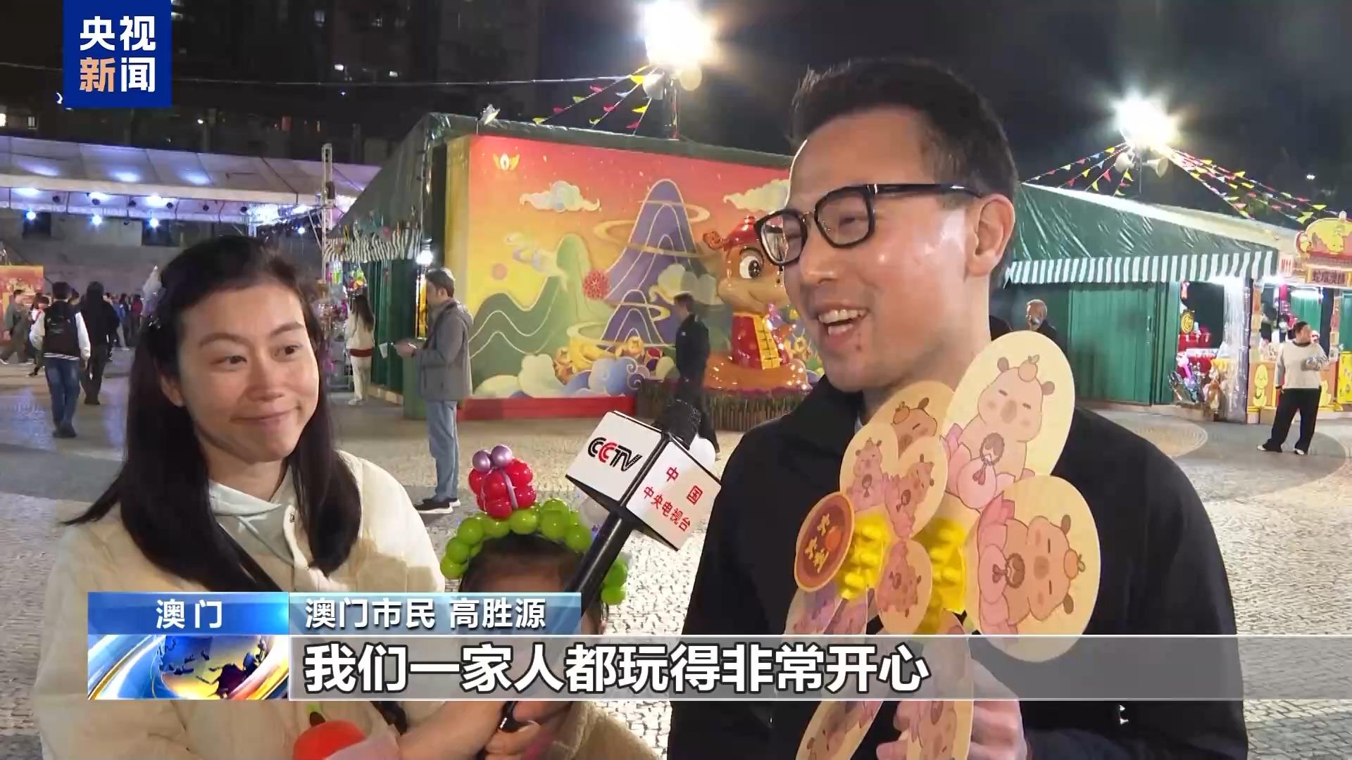 澳门市民 高胜源:今天我们一家人过来逛年宵市场,我们一家人都玩得非常开心。新的一年,我祝愿祖国国泰民安、繁荣昌盛,澳门越来越好,我们的生活也越来越好。