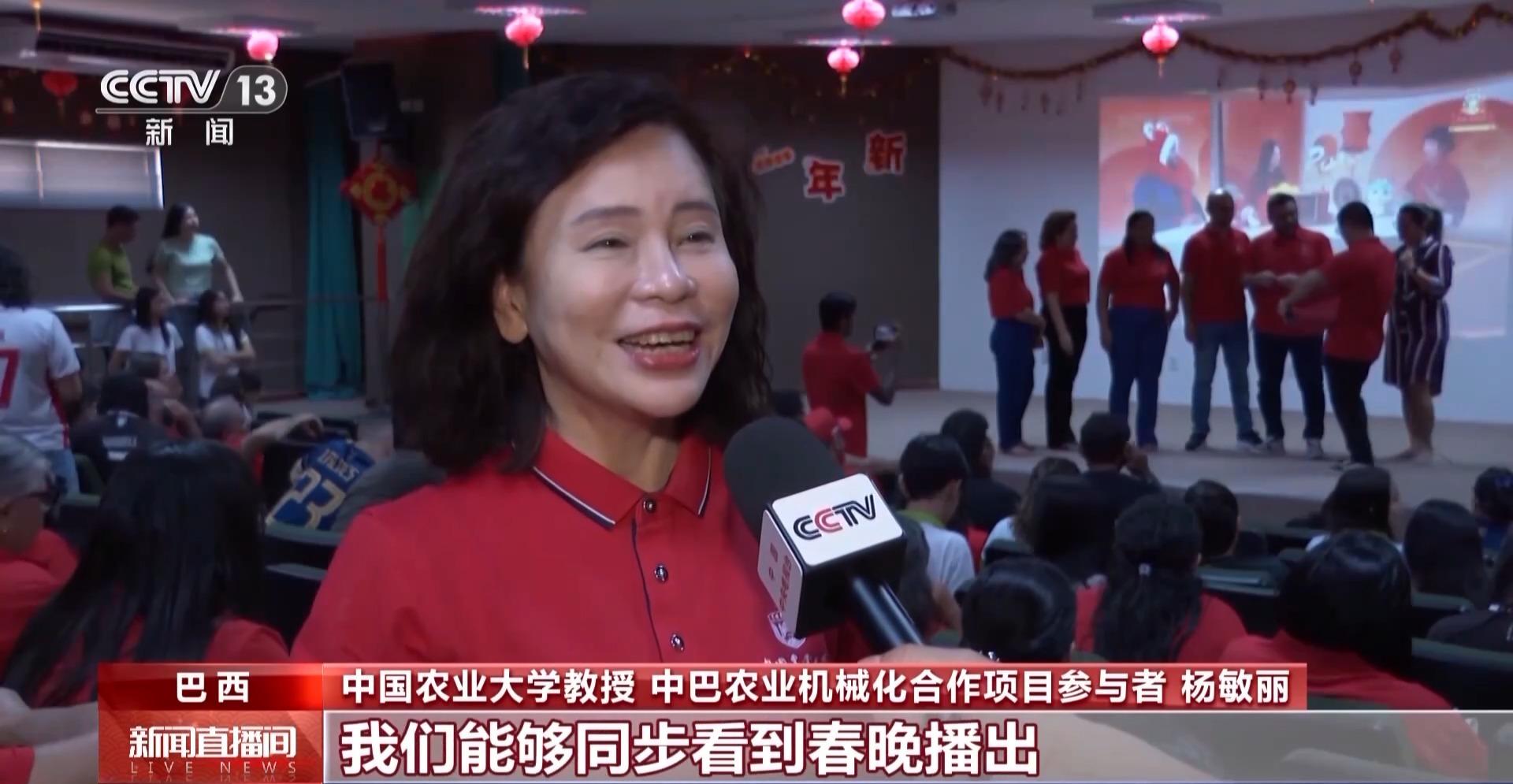 中国农业大学工学院教授、中巴农业机械化合作项目参与者 杨敏丽:我今年是第一次在国外过年,我们能够同步看到春晚播出,并且巴西当地朋友跟我们一起共度了联欢晚会的过程,特别令人激动。今晚的节目很丰富,并且带动了我们当地朋友一起来欢呼。