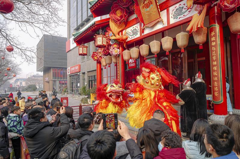 春节期间,街区还有《瑞狮迎春》舞狮表演、市井杂技《百艺贺新禧》、对口相声《花灯礼赞》等新春特别节目轮番上演,节日限定NPC“月老”“财神”也降临长安为游客送财送喜。