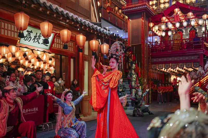 融合传统与创新,让游客在唐风古韵与时尚新潮的碰撞中过文化年,长安十二时辰主题街区正在带动西安年“活起来”也“火起来”,为西安文旅消费市场锦上添花。