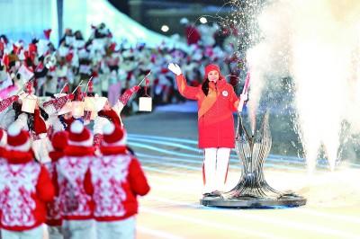 2月7日,第四棒火炬手张虹点燃主火炬。