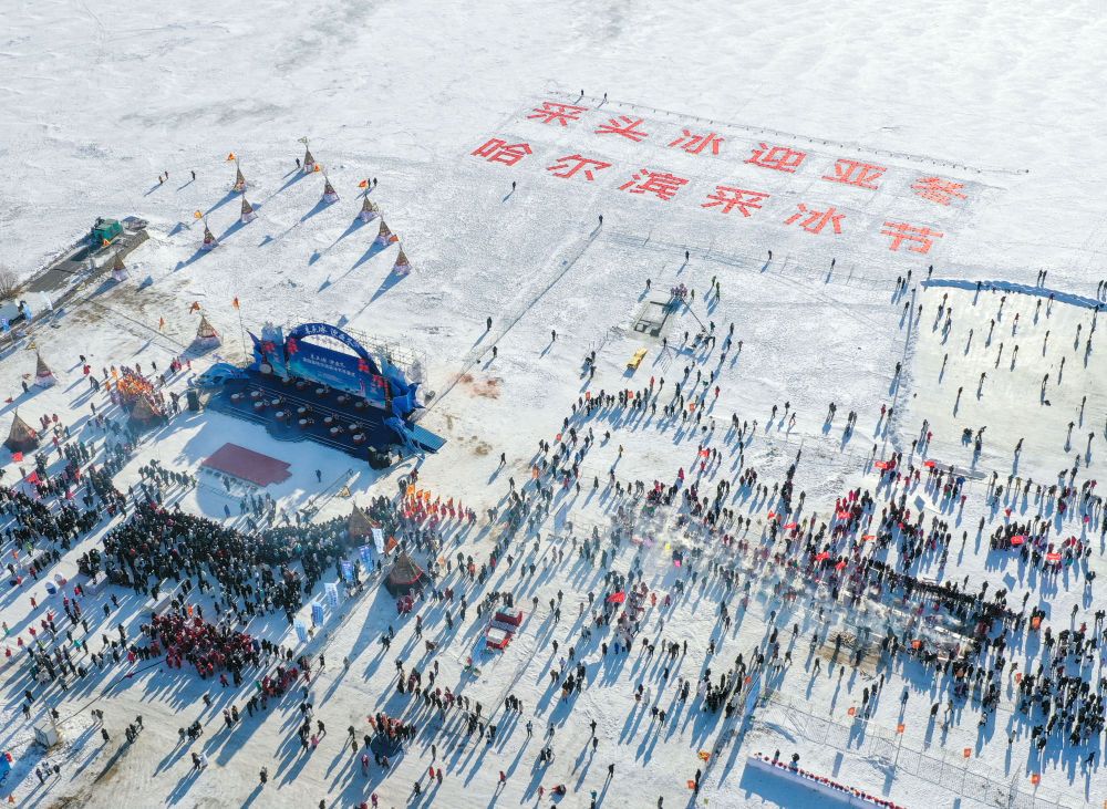 2023年12月7日拍摄的第四届哈尔滨采冰节活动现场。