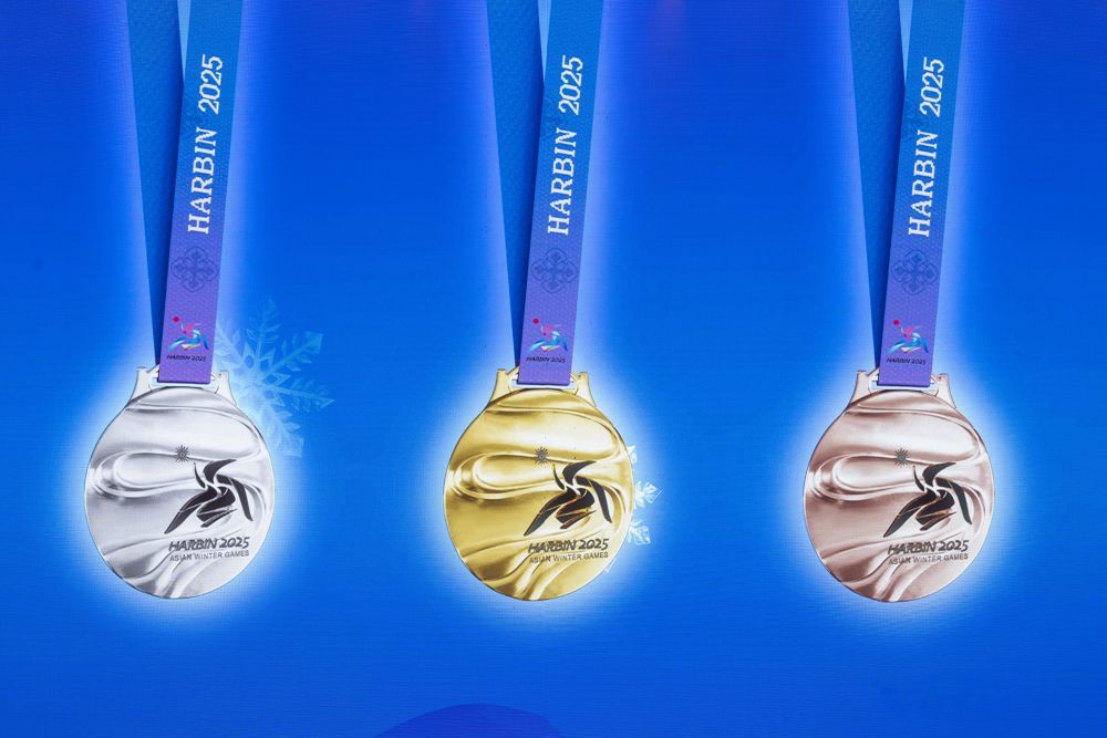 这是亚冬会奖牌“竞速精神”的正面(2024年10月30日摄)。