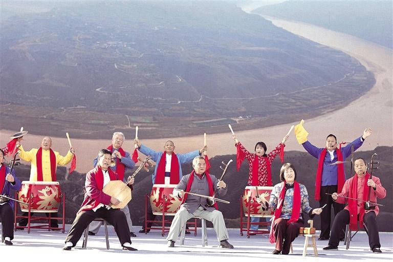华阴老腔亮相“大地欢歌 冬暖万家——2024年全国冬季‘村晚’示范展示暨渭南·潼关黄河岸边过大年”活动(资料照片)。
