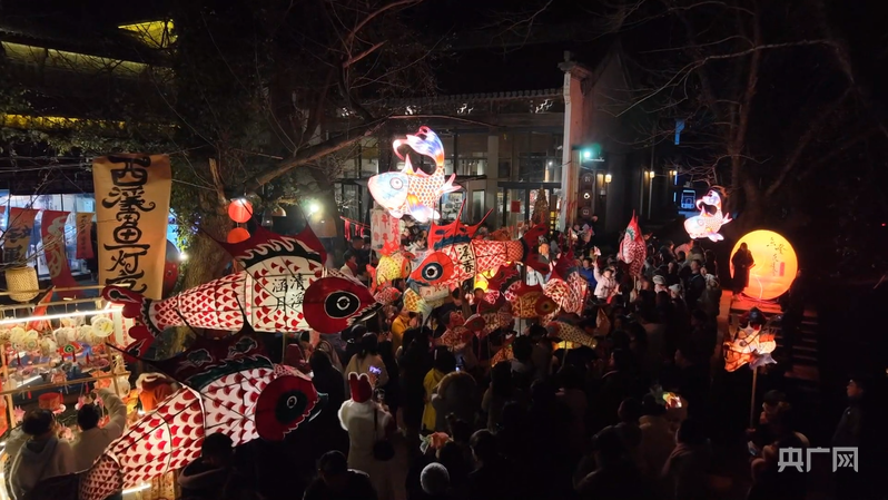 安徽省黄山市徽州区西溪南村,是中国传统村落之一。元宵佳节,一场欢乐的嬉鱼灯热闹上演。活动现场,鱼灯轻摇、鼓乐齐鸣,数十盏鱼灯在夜幕下缓缓游走,跃动于古桥之上、穿梭于溪流之间,与古朴的徽派建筑相映成趣。而在同为中国传统村落的黄山市歙县北岸镇瞻淇村,村民们也自制了传承八百余年的鱼灯,带着“平平安安、年年有余”的美好祝愿,巡游祈福。瞻淇鱼灯县级代表性传承人郑冬蛟说,鱼灯一亮,就到了团圆的日子。