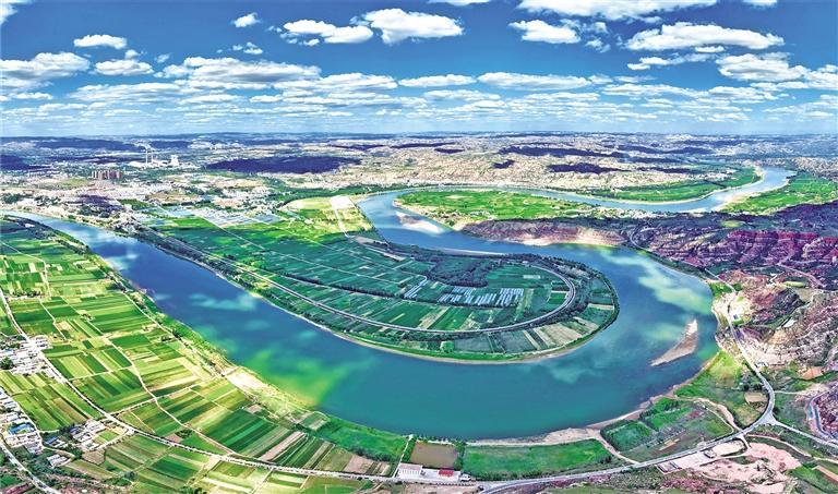图为位于府谷县的“黄河入陕第一湾”,蓝天、白云、绿水、青山共同构成一幅美丽的生态画卷(资料照片)。 记者 李旭佳摄