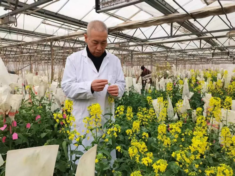 Δ董育红正在查看油菜杂交授粉情况。