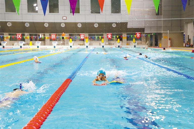 专业的教练队伍、优质的服务和良好的训练环境,吸引大批青少年选择在这里学习、练习游泳。目前,俱乐部的游泳长训班共有31个队组500余名学员。在西安高新第六小学上五年级的程子陌今年11岁,接受游泳培训已有半年,目前4种泳姿全部掌握。“我每周来这里上5节游泳课。跟着教练学习,我的成绩提升很快。我100米自由泳的最好成绩是1分16秒。我还想游得更快,争取在今年达到国家二级运动员的标准。”程子陌说。(记者 张江舟文/图)
