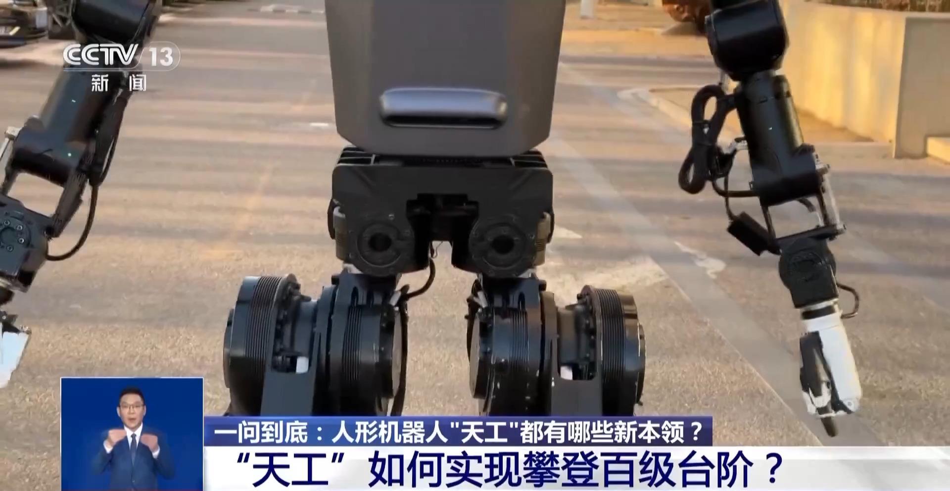 人形机器人“天工”之所以能实现户外场景攀爬100多级台阶的本领,主要依赖于它新增加的两个装备。