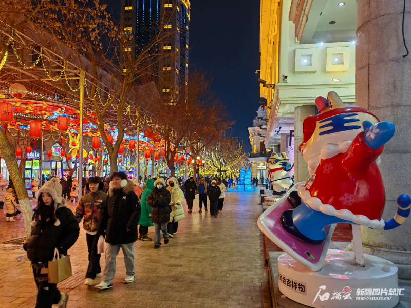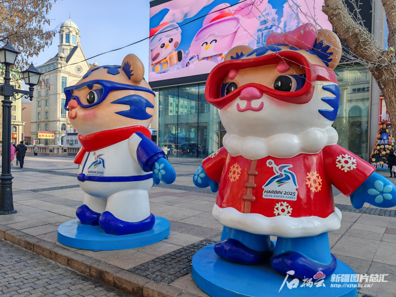 亚冬会的吉祥物让中央大街增添了几分萌宠。石榴云/新疆日报记者 黄兴摄