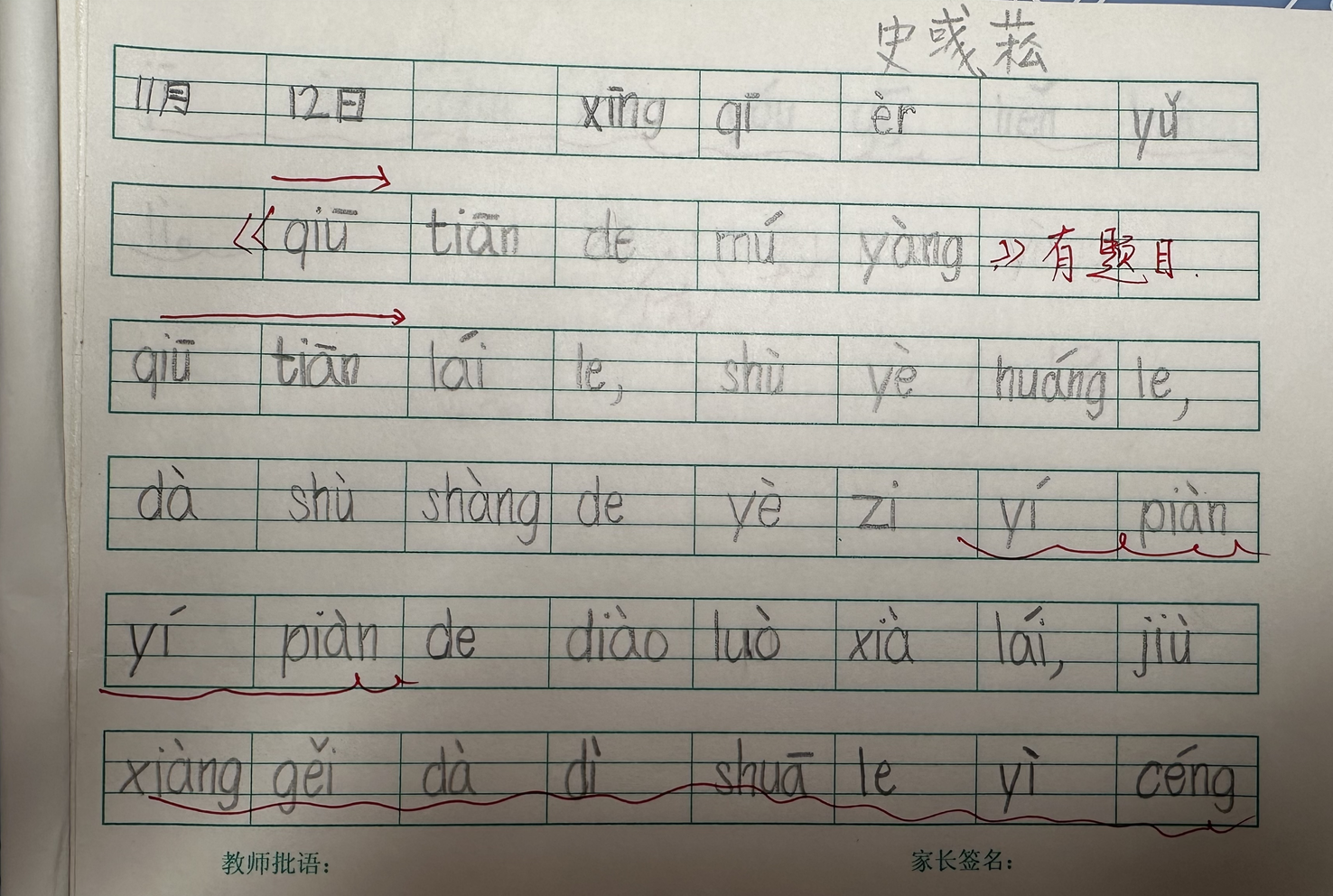 据了解,自2024年9月以来,西安曲江第二学校小学部一年级教学组专注一年级新生的语言阅读能力和写作能力,把提升一年级学生综合素质和读写能力放在首要位置,组织孩子们积极写日记,不仅培养了孩子们的观察力,更让他们学会用文字表达独特见解。