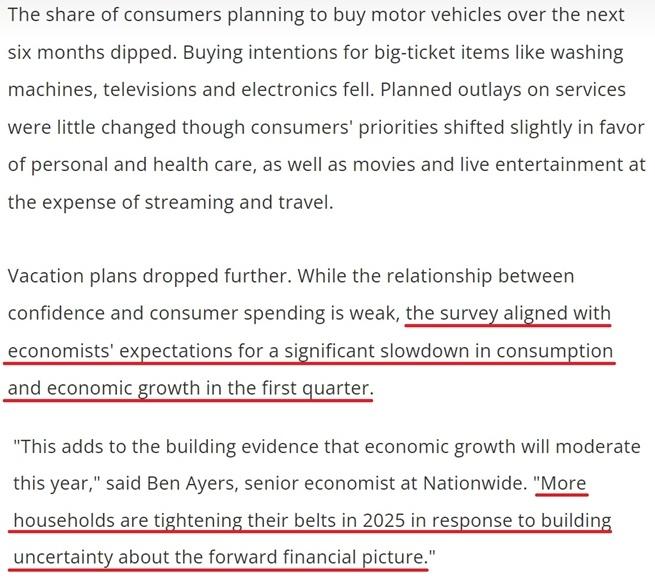 报告警告,如果美国消费者信心继续下滑,可能会显著影响他们的消费模式,在未来几个月减缓经济增长。