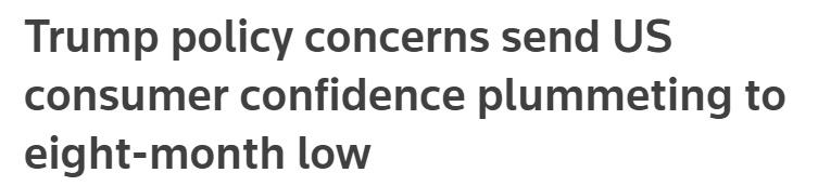 各家媒体纷纷用“暴跌”“直线下降”“急剧恶化”等词汇来形容美国消费者信心的显著下滑。