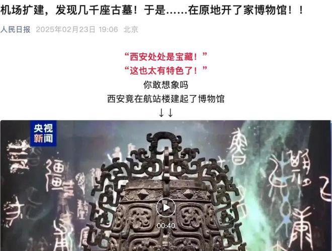 2月23日,人民日报、新华社、央视新闻等央媒微信公众号,集中发文介绍西安机场T5航站楼里的博物馆。