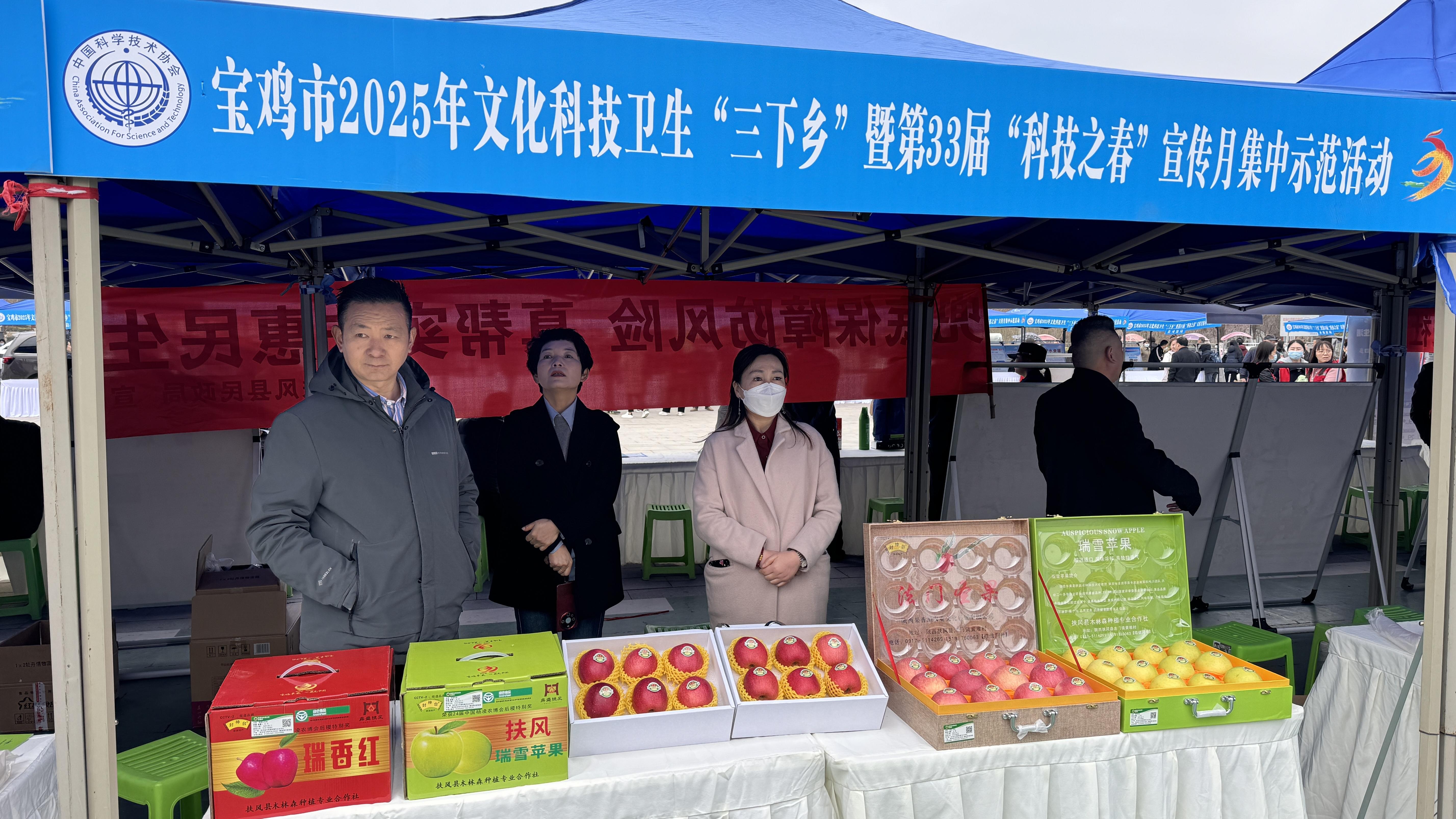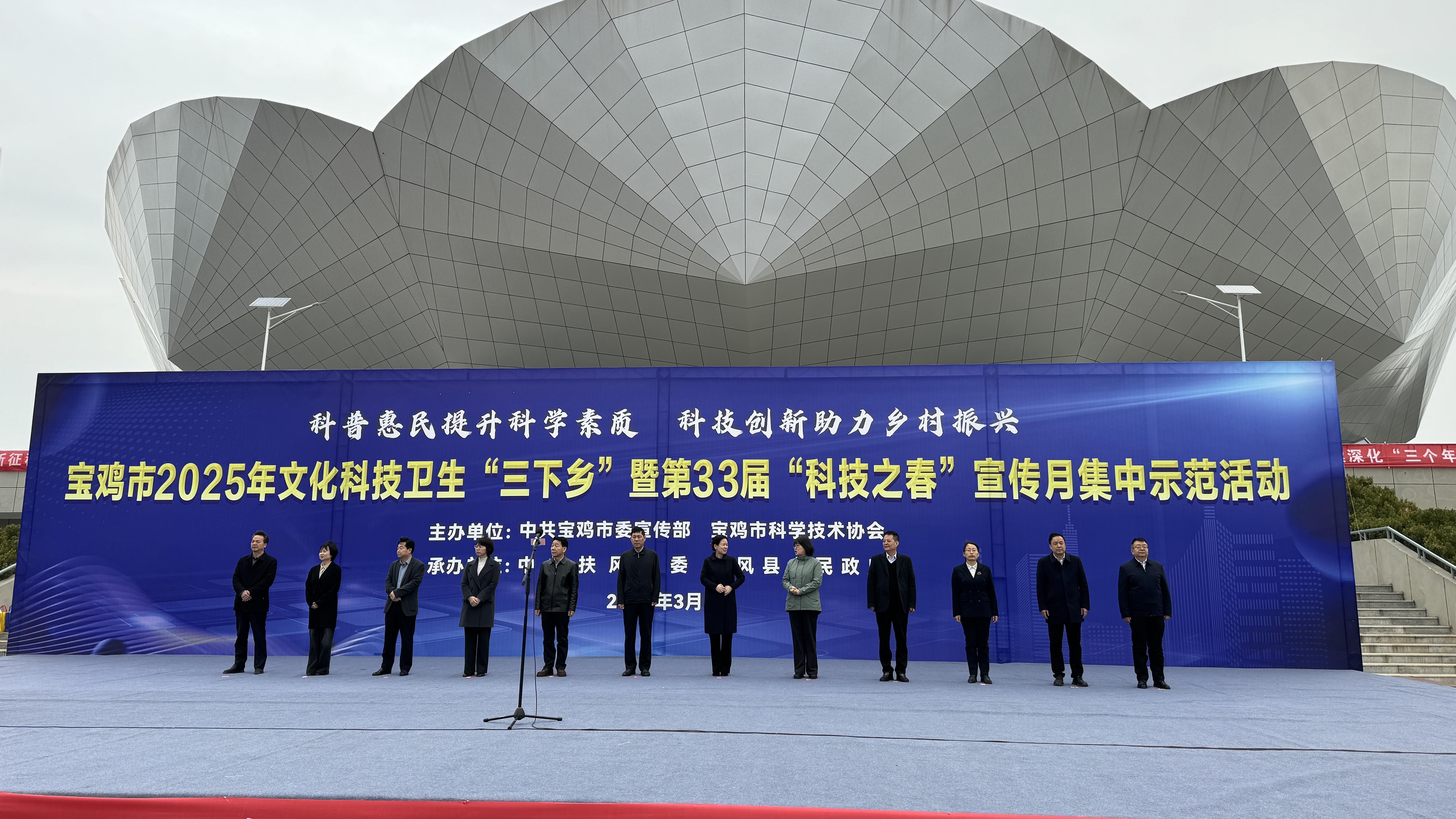 3月11日上午,宝鸡市2025年文化科技卫生“三下乡”暨第33届“科技之春”宣传月集中示范活动在扶风县体育场南广场启动。省科协有关负责同志宣布活动启动。宝鸡市委常委、宣传部部长边雅妮参加活动。