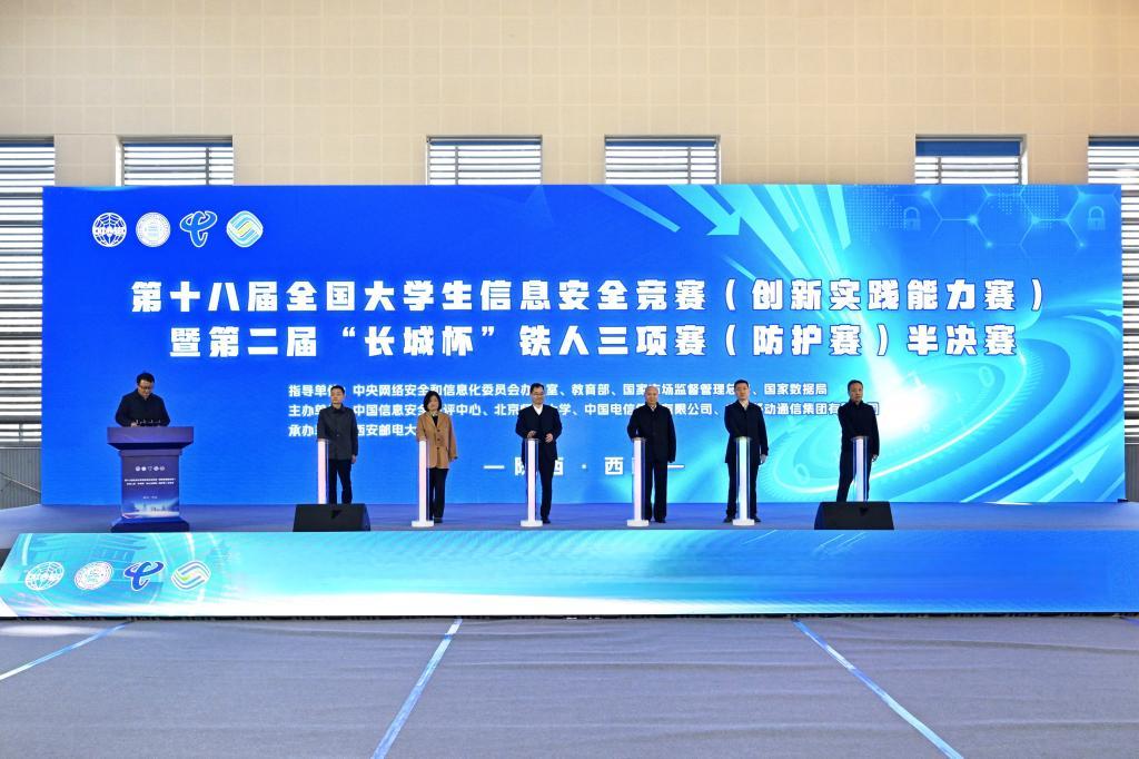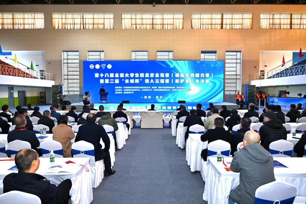 3月16日,由中央网络安全和信息化委员会办公室、教育部、国家市场监督管理总局、国家数据局指导,中国信息安全测评中心和北京师范大学、中国电信集团有限公司、中国移动通信集团有限公司联合主办,西安邮电大学承办的第十八届全国大学生信息安全竞赛(创新实践能力赛)暨第二届“长城杯”铁人三项赛(防护赛)陕西赛区半决赛在西安邮电大学长安校区体育馆举行。西安邮电大学校长卢光跃出席活动并致辞,中国信息安全测评中心副主任温哲,陕西省数据和政务服务局党组成员、副局长白婷,陕西省通信管理局网络安全管理处处长霍选,陕西省委网络安全和信息化委员会办公室网络安全协调和技术处副处长王伟,陕西省教育厅高等教育处四级调研员马飞跃,以及陕西、山西、河南、贵州、新疆、青海、宁夏、甘肃、内蒙古及新疆生产建设兵团相关部门负责人、各地市相关部门负责人,高校、行业企业代表参加启动仪式。大赛启动仪式由西安邮电大学副校长苗忠主持。