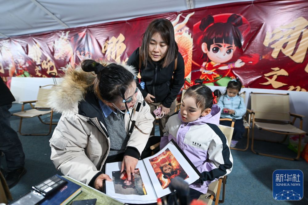 游客在天津哪吒小镇观看演出(3月16日摄)。