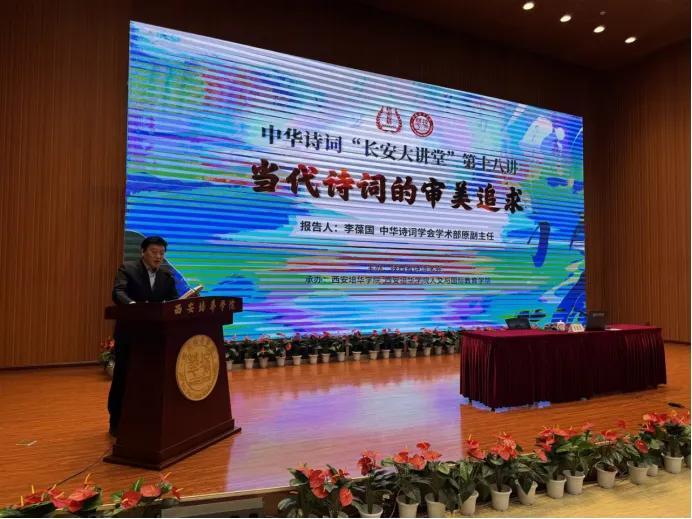 3月15日,由陕西省诗词学会主办,西安培华学院及学校人文与国际教育学院承办的中华诗词“长安大讲堂”第十八讲,在西安培华学院维之图书馆报告厅圆满举行。本次讲座聚焦“当代诗词的审美追求”,特邀中华诗词学会学术部原副主任李葆国先生担纲主讲。来自全国各地的诗词爱好者、西安培华学院人文与国际教育学院中文系全体教师以及部分学生,共计400余人齐聚一堂,共享这场诗词盛宴。