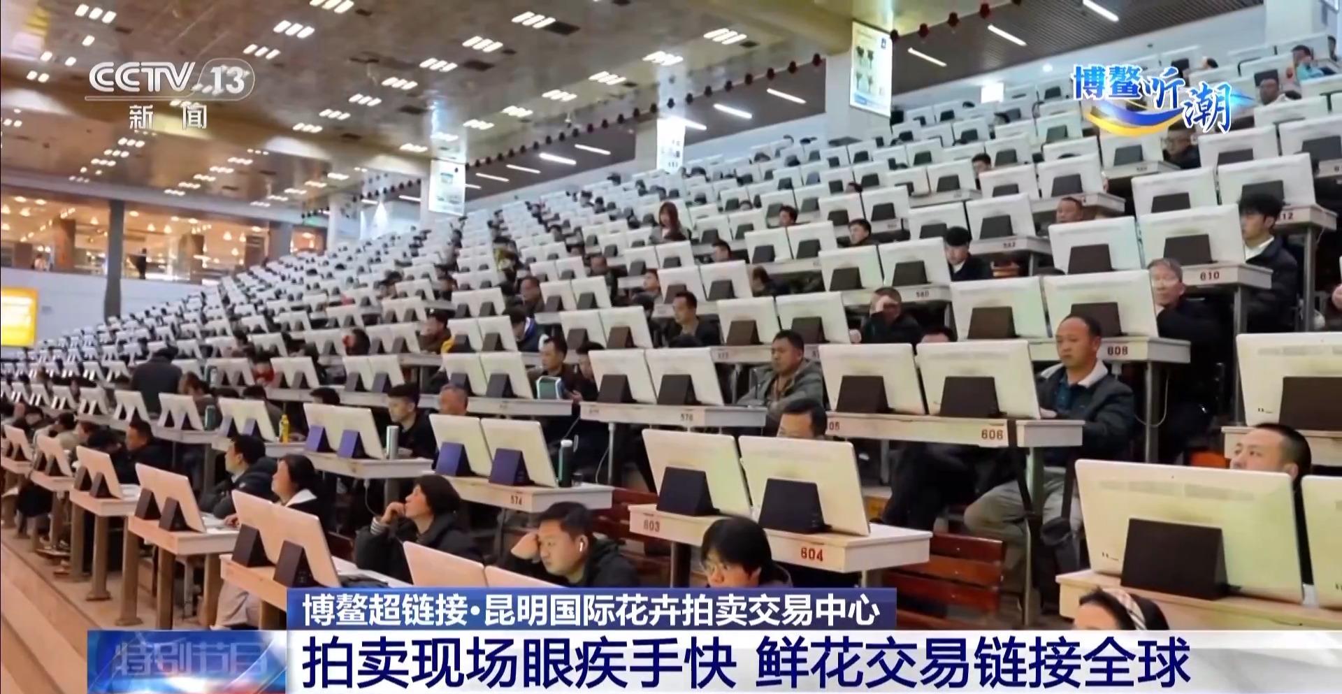 在昆明国际花卉拍卖交易中心里,每天都有数百万枝鲜切花通过拍卖销往世界各地。