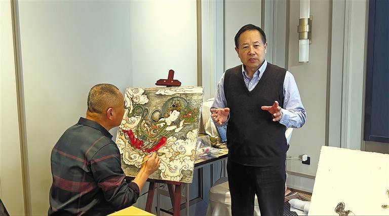 王建岐:理论知识上,要深入了解壁画历史、艺术价值和制作材料。这是我们解读壁画内涵、尊重原作的基础。比如,熟悉唐代壁画的风格特点、颜料使用等,才能在修复时保持其原真性。实践操作中,学员们需熟练掌握过稿子、上色、做旧等制作环节及相关技能。过稿子要求精准勾勒线条。上色需用传统矿物颜料多次渲染,使色彩饱和且协调。做旧更不容易,通过特殊工艺让新壁画呈现古老质感,需要对古代材料和工艺深入了解。