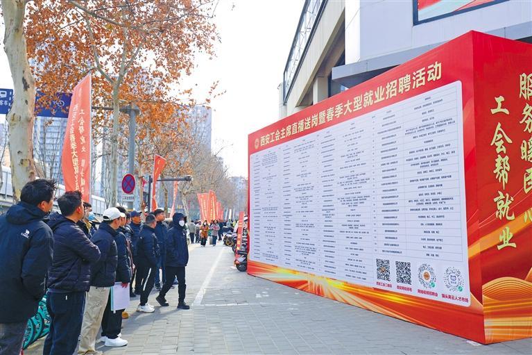 2025年西安工会主席直播送岗暨春季大型就业招聘活动现场(资料照片)。