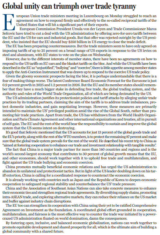 原文标题:Global unity can triumph over trade tyranny