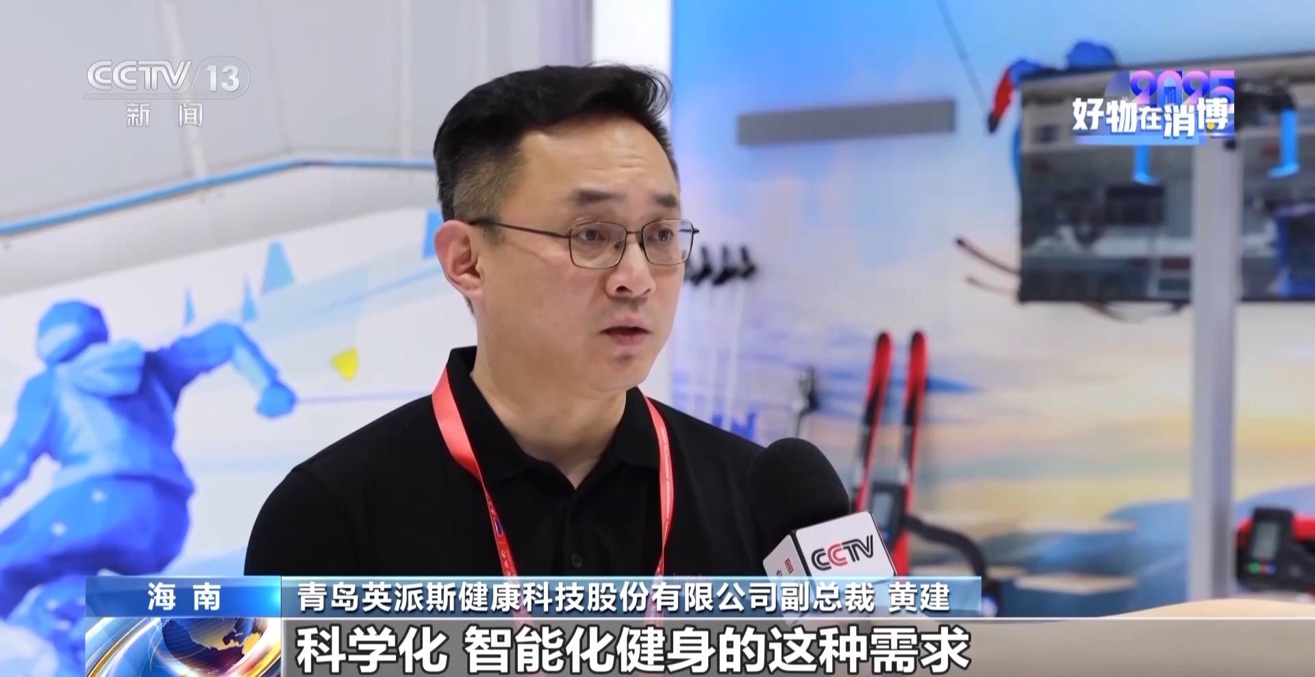 青岛英派斯健康科技股份有限公司副总裁 黄建:我国的体育消费呈现出科学化、智能化的需求。那么针对这种需求,我们也是在传统产品的基础上进行智能化升级,这次展会我们为大家带来了智能冰雪运动装备,实现了青少年培训、运动体验这种复合消费的一个功能和场景。